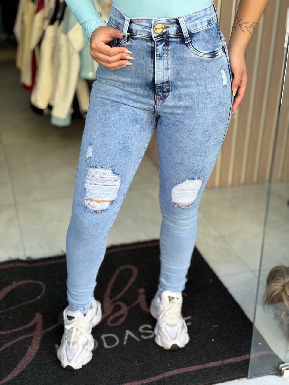 CALÇA JEANS COM LAYCRA;