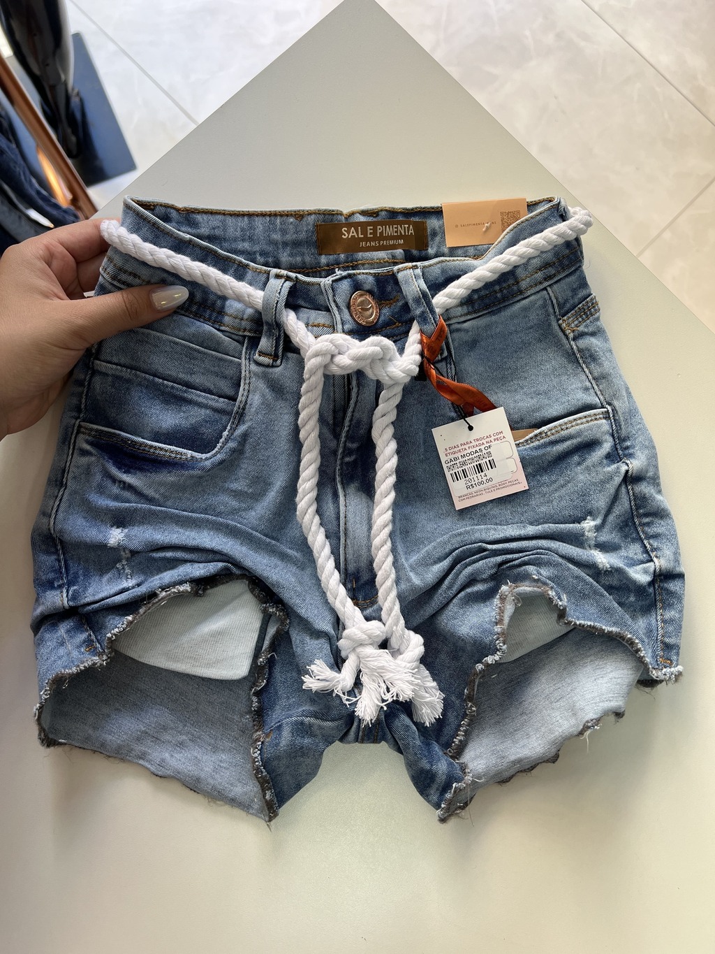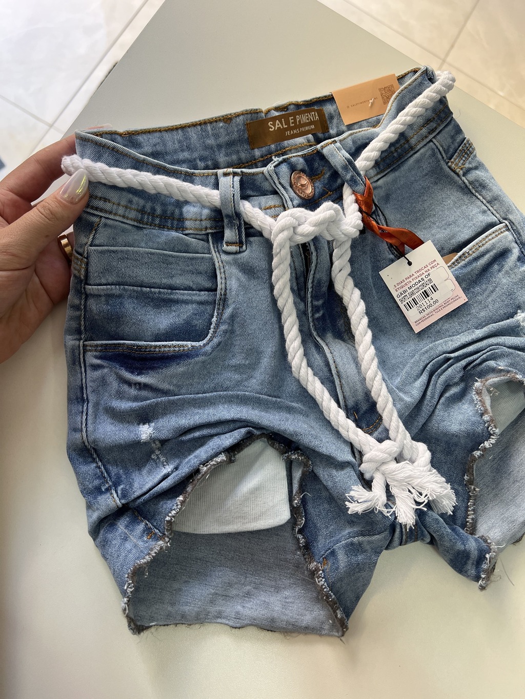 SHORTS JEANS COM CORDÃO, COM LAYCRA.